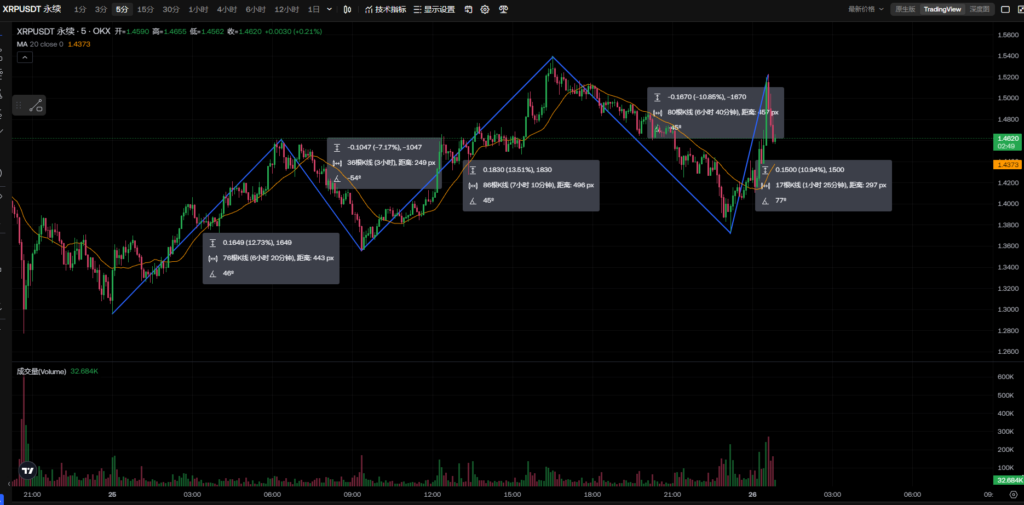 XRP-2024-11-25 振幅18.6%,涨幅8.7% 2024年12月4日2024年11月26日 作者 想飞の猫 XRP五分钟K线走势图 00:00 06:25 6h20m+12.7% 09:25 3h-7% 16:30 7h10m+13.5% 23:10 6h40m-10.8% 00:35 1h25m+10.9%